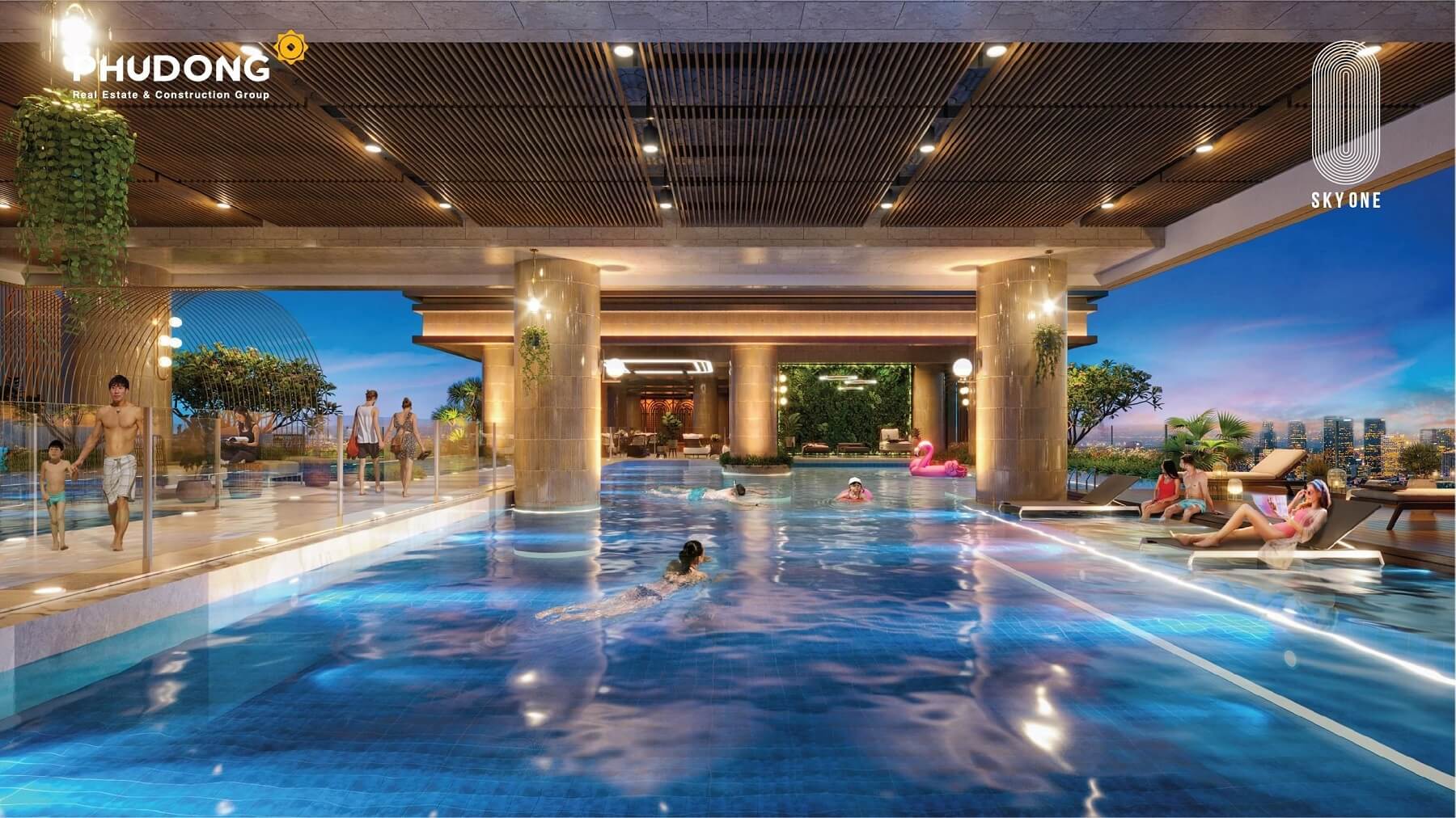 Phu Dong Sky One mang tới cho cư dân trải nghiệm chất lượng cuộc sống cao cấp với hơn +30 tiện ích: Hồ bơi nước ấm ( đảm bảo nhiệt đồ hồ bơi luôn từ 30-33 độ, mọi thời gian trong ngày ) & tốt cho sức khoẻ với công nghệ ion muối điện phân; trường mầm non khối đế, trung tâm thương mại…